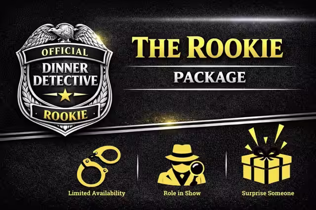 The Dinner Detective offers an immersive experience where anyone in the audience may become part of the show. The action unfolds throughout the entire room, engaging all guests. A crime occurs during the show with hidden clues revealed as the story progresses. Throughout the show, our professional Detectives guide guests in solving the case. The Top Sleuth who provides the best solution wins a prize package before the killer is revealed. PLEASE NOTE: The performance may include prop guns, sound effects, and brief lighting blackouts to enhance the experience. For specific details about your show’s location, please contact us.