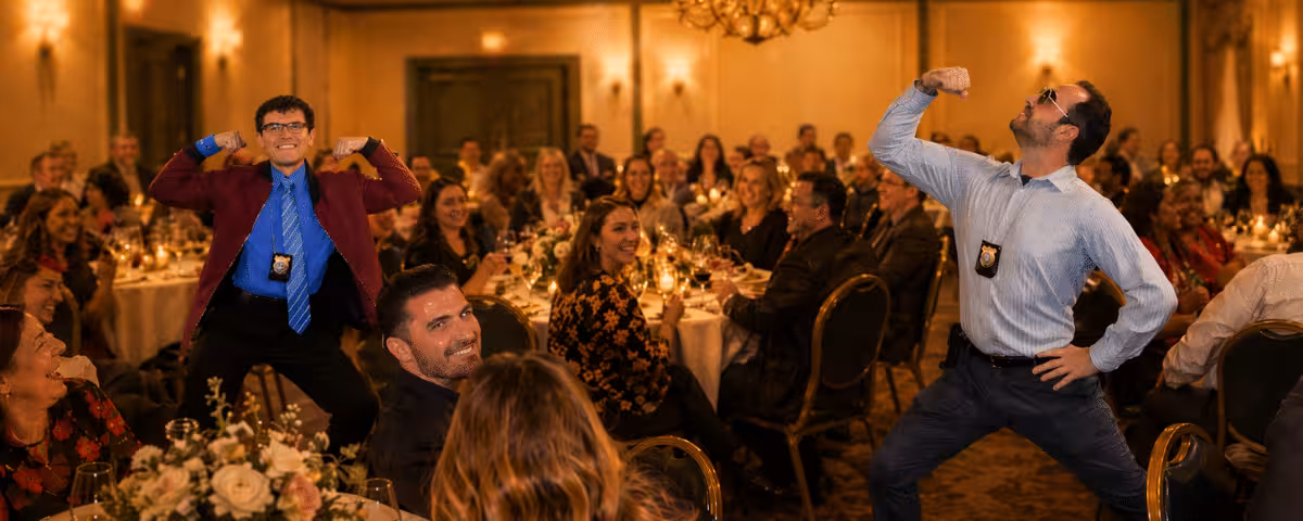 Unlike a typical murder mystery dinner theater event, The Dinner Detective drops you into a modern-day crime story unfolding in real time all around you. Our actors are hidden in plain sight among the audience, so the culprit could be sitting just a few feet away. The result is a fast-paced, social, and immersive night out filled with comedy, suspense, audience interaction, and unexpected twists.